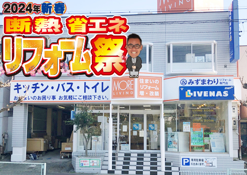 モアリビング春日井店は、高蔵寺ニュータウンの開発初期、昭和53年にオープン!当時は住宅設備の移行期で、シャワー付きのお風呂やトイレの洋式化など、水まわりリフォームが盛んでした。そんな時代に地域のお役立ちショップとして発展してきました。